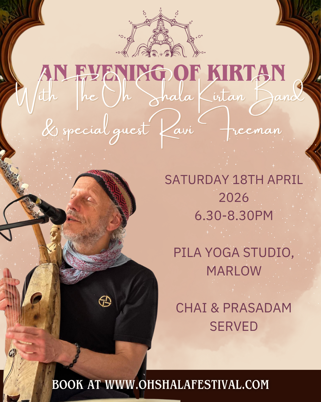 Welcome to a Very Special Evening of Kirtan with the Oh Shala Kirtan Band AND Special Guest, Ravi Freeman